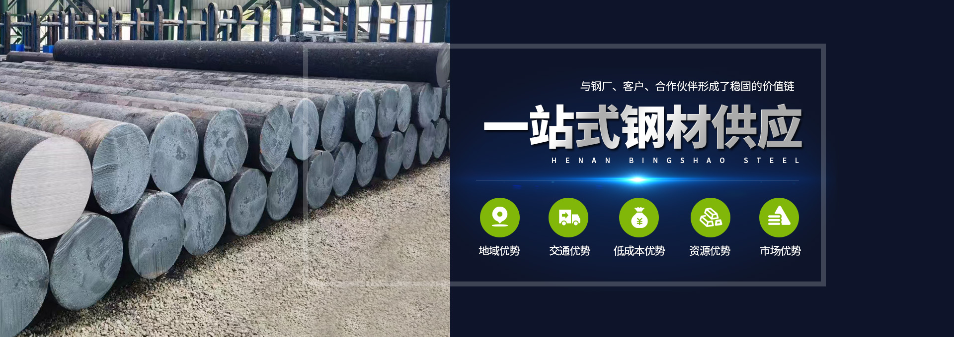 河南兵紹鋼鐵有限公司是豫北地區一家集鋼材銷售、存儲、物流為一體的鋼材貿易企業,位于甲骨文的故鄉,世界文化遺產“殷墟”所在地,中國八大古都之一河南省安陽市。這里交通便利:緊鄰京港澳高速,安南高速、京廣鐵路,107國道,安陽市“紅旗渠”機場。我公司是沙鋼集團安陽永興特鋼有限公司一級代理,秉持:質量好、價格低、服務好。公司主營:碳結圓鋼45#、40Cr、Q355B、Q355D、35CrMoA 35C 35#、普碳圓鋼Q235B、HPB300材質和H型鋼銷售。公司價值觀“誠信、致遠”,誠信:誠實勞動、信守承諾、誠懇待人;致遠:持之以恒達成長遠目標。公司目標“為社會創造zui大價值、為員工創造zui佳生活?!苯涍^四年多的發展,公司銷售網絡遍布全國,業務輻射20多個省、自治區、直轄市。熱誠歡迎八方來客,來人,來電洽談業務,合作共贏。聯系電話:0372-3999061 傳真:0372-3999061 3